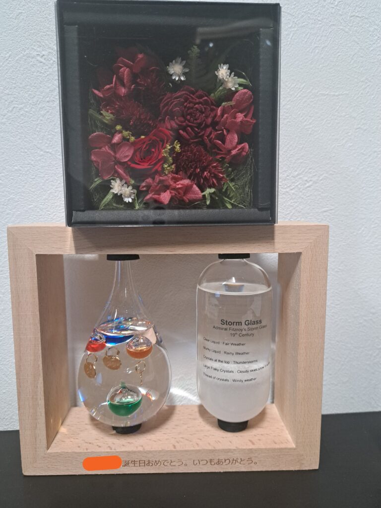 ”お花”と”ガリレオ温度計&ストームグラス”です😄
